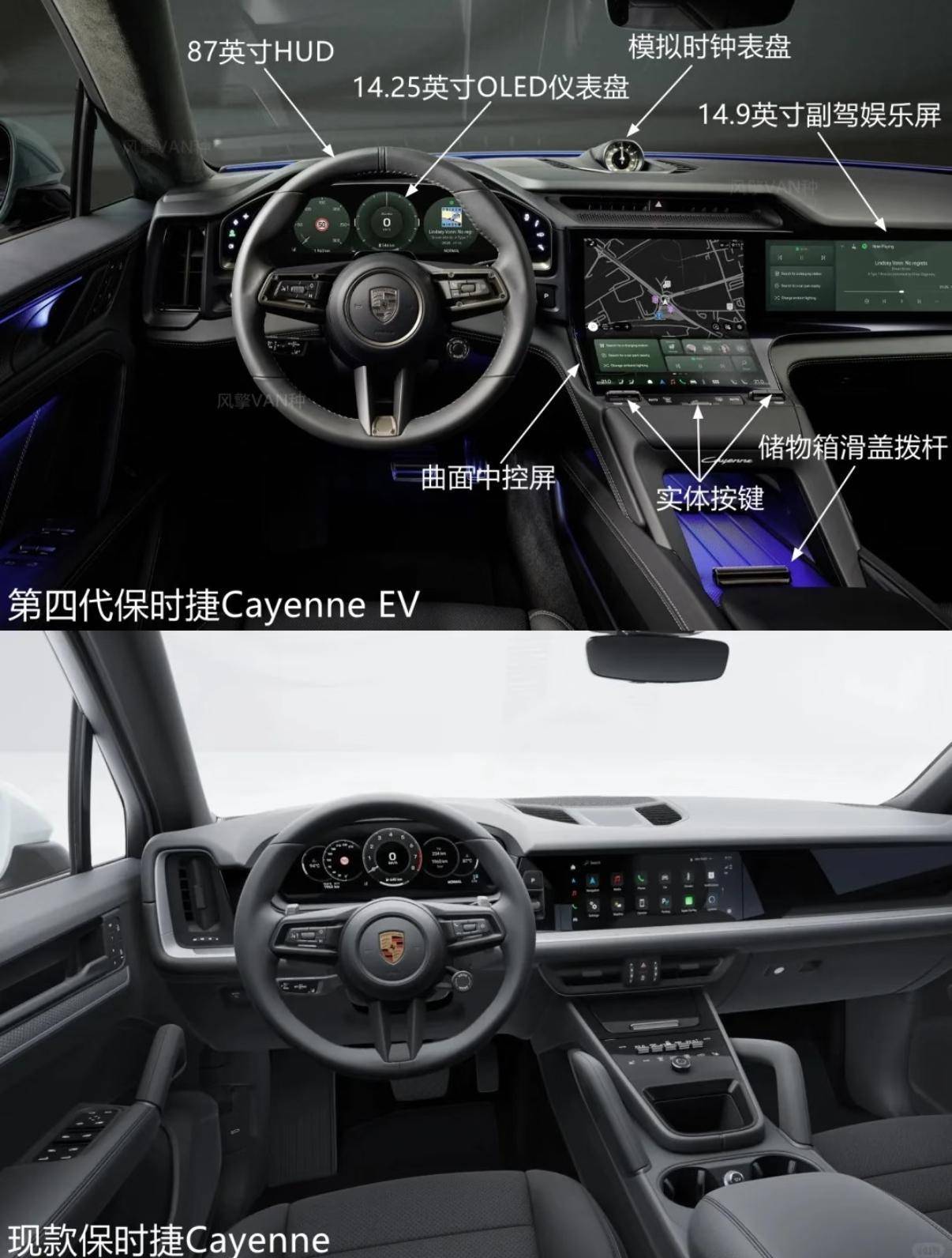 底盘与科技配置也延续了保时捷的高端水准。全系标配自适应空气悬架与保时捷主动悬架管理系统,可选装后轴转向功能(后轮转向角度达5度),Turbo版本更配备限滑后差速器与主动空气翼,配合0.25的超低风阻系数,兼顾操控精准度与行驶舒适性。内饰搭载弧形OLED Flow Display中控屏、14.25英寸全数字仪表与AR抬头显示,13种车身颜色、12种内饰组合及个性化定制服务,满足多元审美需求。(内饰对比图来源于网络)